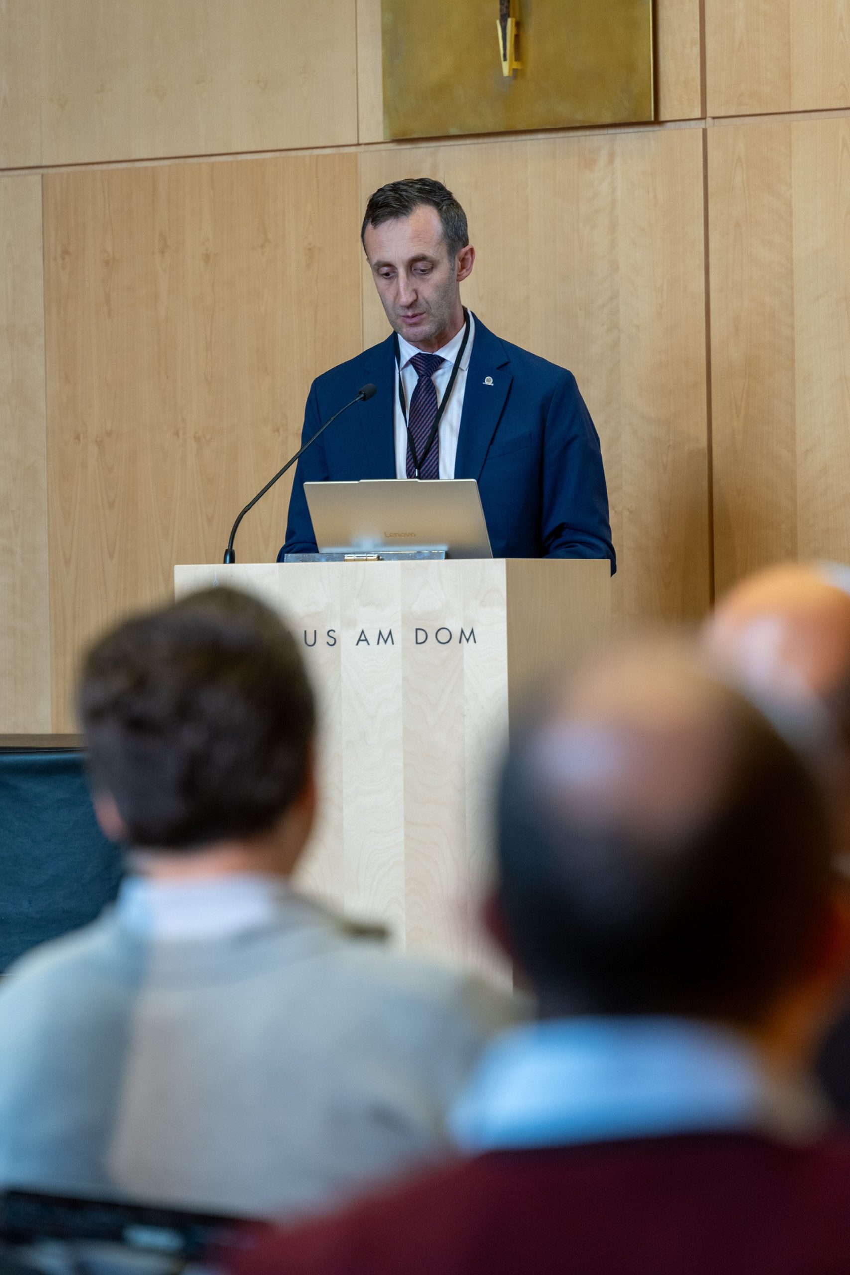 - Asoc. Dr. Genti Kruja, President i Religions for Peace Europe dhe Sekretar i Përgjithshëm i KNFSH-së, mbajti kumtesën me temë “Rishikimi i Nostra Aetate – Një Perspektivë Shqiptare”, ku theksoi kontributin dhe modelin e Shqipërisë në ndërtimin e dialogut dhe mirëkuptimit ndërfetar.